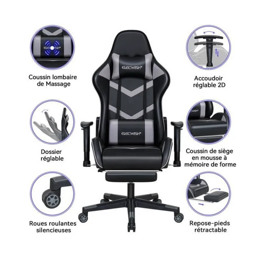 Très confortable: cette chaise est livrée avec un appui-tête et un coussin lombaire massant, ce qui est une bonne nouvelle pour les personnes souffrant de douleurs au cou après de longues heures de jeu ou de travail. Complété par les coussinets lombaires et cervicales amovibles inclus, votre confort de conduite...
